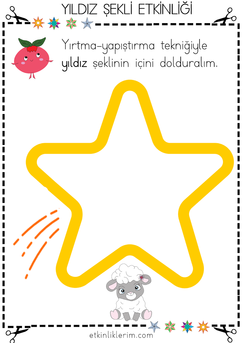 Okul öncesi yıldız boyama için hazırlanmış yıldız kalıbı yıldız etkinlikleri. yıldız çizimi nasıl yapılır diye soran öğrenciler için hazırlanmış yıldız boyama sayfası etkinliği. Yıldızlar şarkısı ve yıldız şekli okul öncesi etkinlik kitabı sayfası.